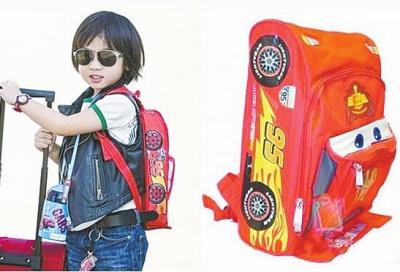 Kimi所背书包出自迪斯尼出品的《赛车总动员》系列。资料图片