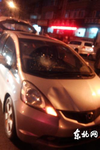 车风挡玻璃破碎。东北网记者 那鹏翔 摄