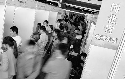 今天上午,京津冀招聘会河北省招聘专区前人头攒动 摄/法制晚报记者 刘畅