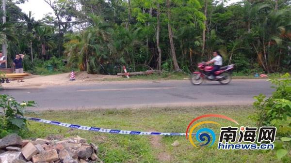 4月27日下午,记者走访时发现,事故现场距离定安县西潮小学校门口不远处,是一个丁字路口,同时,主干道与丁字路口处属于急转弯处,现场路边还有大量没有拉走的河沙,以及残留摩托车残片、死者的拖鞋等遗物以及被处理过血迹,四周还留下警方设置的警戒线。一名在路边等车的村民符女士告诉记者说,4名死者中有2名是定安县岭口中学学生,事故现场很惨烈。