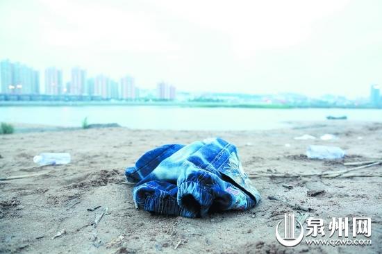 溺水孩子落在江边的牛仔裤