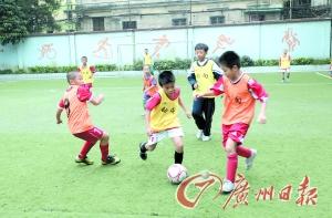广州市中小学足球氛围浓厚。图为广州市海珠区后乐园街小学的学生在训练踢足球。该校是广东省体育特色学校,开展足球运动已经半世纪,为国家足球队输送了多位优秀运动员。(资料图片 记者骆昌威摄)