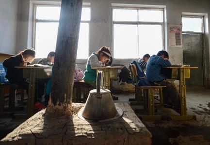 “为了节省煤和柴火,冬天我们只能把四个年级的孩子集中到两间教室,学前班和一年级的7名学生一起上课,另外10名学生同上二年级和四年级课程。”校长刘秀辉说,松原地震使得几间教室墙面出现了轻微裂缝,现在学校大院里就数这两间房还结实。