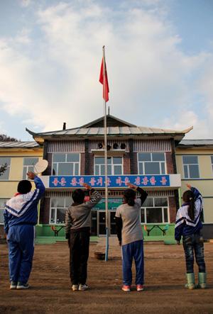 延边朝鲜族自治州和龙市芦果村小学的升旗仪式。