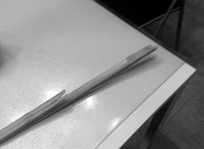 记者在张利民的办公室内见到了两根“戒尺”,均有一尺多长,“戒尺”前端已经裂为几瓣。