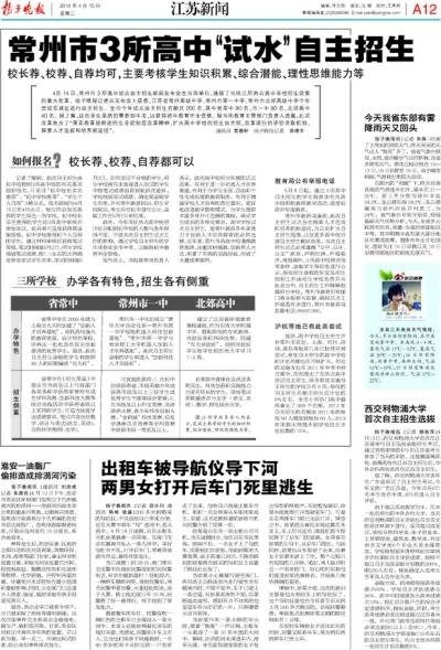 今年,常州获得自主招生权的学校共有3所,分别为江苏省常州高级中学、第一中学、北郊高中,共招200人。