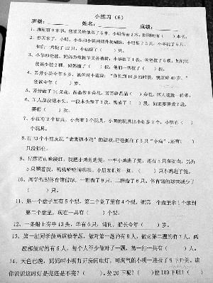 昨天下午,记者来到南京市洪武北路小学,出题老师是该校低年级数学组组长魏琼,她向记者出示了那张练习题,这张小练习上共有14道题目,而被网友封为“神题”的正是第12题。