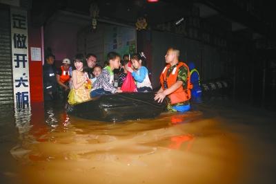 看到信息后,东莞市南城消防大队紧急出动12名消防官兵赶赴现场。20时30分,记者随消防官兵到达塘厦。此时,耶山路到塘龙东路不到500米路段内已经积水成河,水深齐腰。附近也已断电,眼前漆黑一片。在消防队员给橡皮艇充气的过程中,市民兰先生抱着小孩从塘龙东路走来。队员们询问后得知还有20多名小孩被困在塘龙东路的华特学校里。