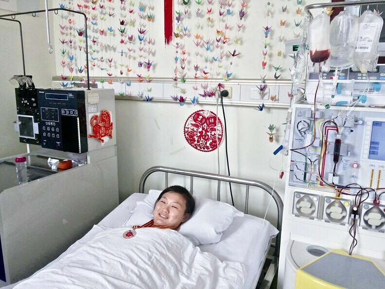 在接连5天注射动员剂之后,昨日中午1时15分捐献正式开始(如图)。因为怕针,采集时她全程闭眼不敢看。