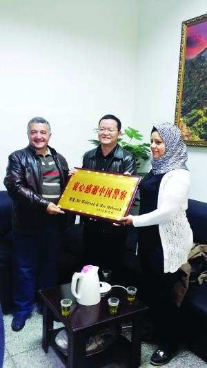 5月12日,阿黛尔·斯巴鲁克夫妇为表示感谢,两人向铜仁警方赠送了“衷心感谢中国警察”的牌匾。(魏泽奎 本报记者 熊真 邱宏卫)