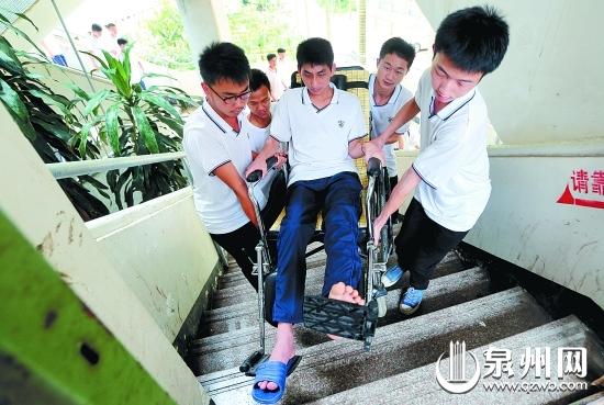 三高中生轮椅上备战高考 同学每天抬上抬下(图)