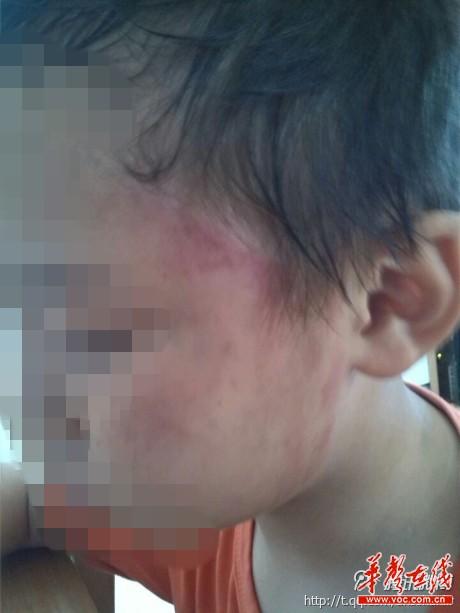 郴州网友尹女士的孩子在郴州第七完小上三年级,5月13日,孩子放学后,尹女士发现孩子脸部浮肿,左脸有明显的手掌印,牙齿也掉了一颗。