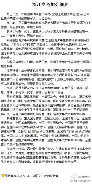 近日,一条“31省份高考新政出炉”的消息称“北京、浙江、四川三省市对品德优秀的学生加20分”网络热传。今日,浙江省教育厅回应该传言不实。