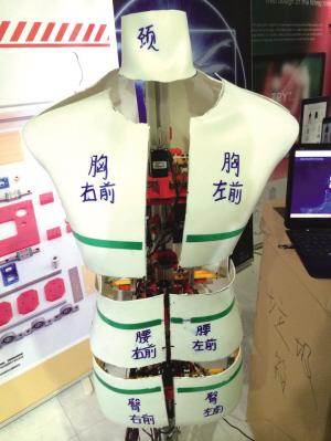 周同学说,这只是雏形,要投入正式运用,还要进一步完善。比如,他们正在考虑在肩膀部分也设置一个活动的外壳,这样在试衣时可以看到衣服跟肩膀是不是合适。也会做得更加精密、美观,而不是像现在这样,电线裸露,零件都是手工制作的。