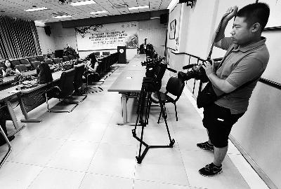 上午,记者在清华附中等待关于高考头名的发布会召开 摄/法制晚报记者郭谦