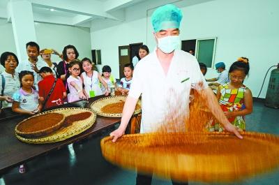 昨天,在市中医院,小学生亲眼目睹了传统中药的生产加工过程。记者金思柳 摄