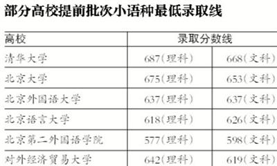 昨日,清华大学、北京大学等高校结束在京提前批次小语种专业录取工作,其中,清华大学文科、理科录取线位列各高校之首,文理科最低分均超一本线过百分。