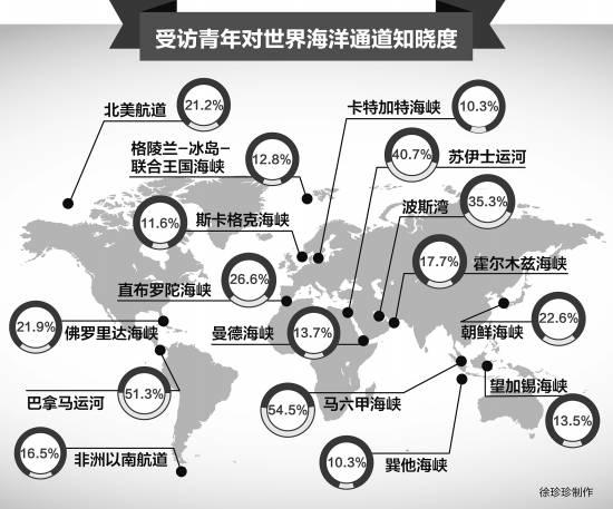 以青年对我国蓝色国土面积的了解程度为例,16年前的调查显示,当时知道我国除960万平方公里国土外,还有300万平方公里“蓝色国土”的受访者比例只有30.9%。而本次调查显示,这一比例已达56.8%。16年间提升了近26个百分点,进步不可谓不大。