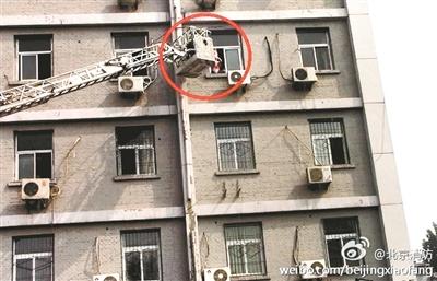 北京科技大学职工楼起火 消防员搭云梯火场救婴儿