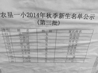 昨日上午,记者在农垦一小的公示栏看到,该校今秋新生名单(第三批)中确实有吴某某的名字,家长为陈某某。随后,记者在海口市龙华区教育局基教科查询得知,吴某某登记的住址确实是“绿海小区127××房”。