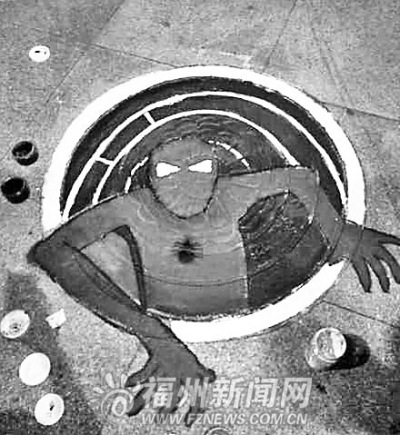 福建工程学院窖井盖涂鸦迎新生:低头有惊喜(图)