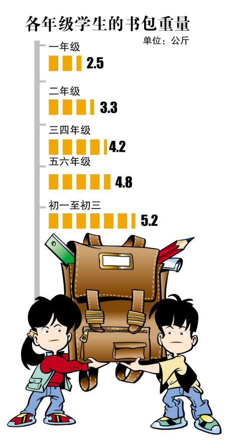 长沙中小学生调查:体重60斤孩子书包13斤(图)