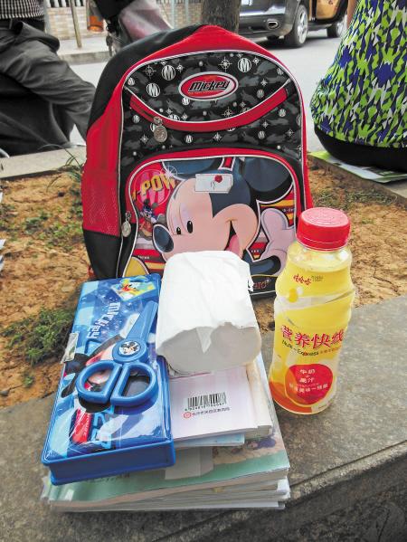 小学二年级一名学生的书包及包内物品,重3.5公斤。