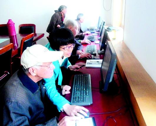 在社区工作的年轻大学毕业生正在教老人们学习电脑上网。(资料片)