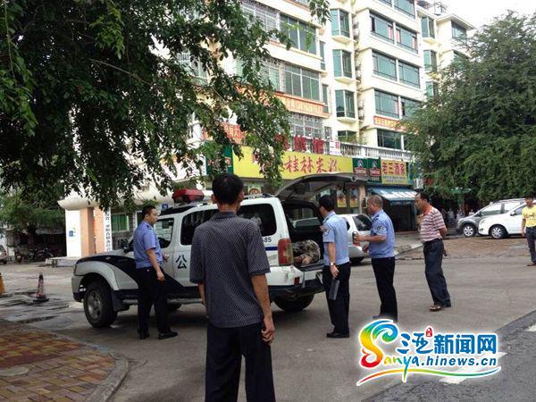 民警将流浪汉控制(三亚新闻网记者马伟元摄)