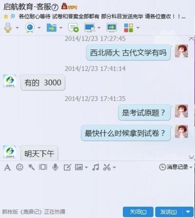 出于好奇,刘女士曾经在一个网名叫“新东方教育”的QQ号询问出售试卷和答案的事项,对方解释,他们有各个学校不同专业的考试卷和标准答案,只要报出报考的学校和专业,就可以了。当刘女士质疑,考研试题怎么可能轻易弄到手时,对方却称,“我们是通过特殊内部渠道拿到试题及答案,具体就不便和你细说了,反正告诉你,没有钱办不成的事,只要有钱,分分钟给你把事办成。”