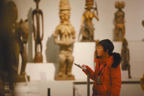 2月13日,北京,来京和父母团聚的留守儿童受邀到国家博物馆参观展览。CFP供图