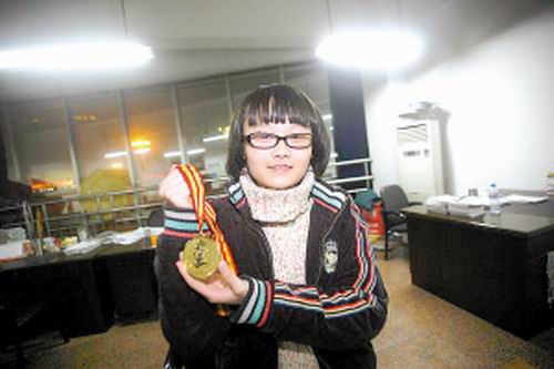 杨柳展示她获得的金牌。 记者 张晓 摄