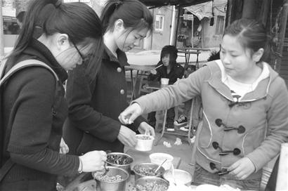 由于兼职耽误了一些学习时间,冯双双很快把兼职的地点换到了学校附近:早上和中午在校门外的小吃摊帮人卖粥,晚上则去手机营业厅卖手机卡。冯双双坦然地说:“我和姐姐每人身上都还背着一万多的债没还,现在是我们必须吃苦努力的时候。”