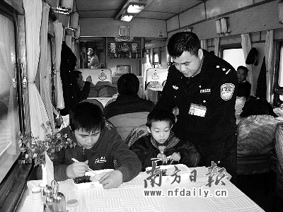 当晚10时30分,乘警长罗中宁在车厢连接处找到两名离家出走的儿童。为方便看护,乘警长将其二人带至餐车细心安排食宿。