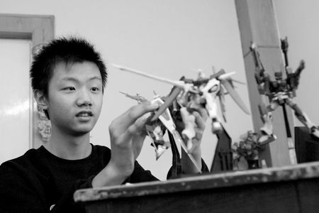 面积不大的客厅内,最显眼的是一台电脑,还有不少样式怪异的“玩具”。14岁的赵泽晨,一身运动装,阳光、帅气,如普通的中学生。