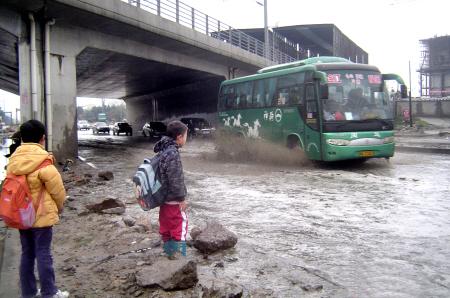 降温,连续降雨,福州市区又积水了。本报新闻热线昨天接到多位市民的反映,在福州福马路、二环路福州市公路局门口、连江南路等多个路段,有多处较为严重的积水,“每回一下大雨,就积水,该怎么办?”市民发出感叹最多的就是这句话。