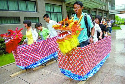 除了吃粽子和看龙舟赛,大学生在端午节还可以做些什么呢?在端午节即将到来之际,华东师大举办了一场“首届端午文化节”。文化节上,大学生们看表演、穿古装、赛旱船、学剪纸、赛诗歌,他们不仅尝试了端午节的另一种“过法”,也在欢乐的气氛中感受到了中华民族的传统风俗和文化。