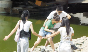 不少围观者接受采访时表示,模拟“演戏”没有必要非得“真刀实枪”。“其实他们这样挺危险的,”一名中年妇女这样说,“穿绿T恤的女孩都踩进水里了,要是她不小心摔倒,或者救她的人没抱住她,搞不好她真的会落水。”