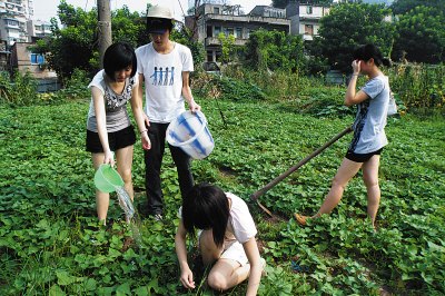 通过筛选,小庚和另外3名女生入选了这次活动,巧合的是,四人竟然全是网上偷菜游戏的资深玩家。7月18日,四名同学就搭上了商报特派专车,来到了南岸区弹子石的一处菜园,开始了他们的种菜活动!