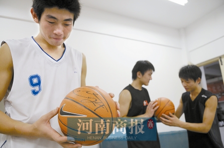 喝过茶,四个大男孩算是正式投入科比门下。随后,他们送上事先准备好的拜师礼:信阳毛尖和一对中国结,中国结上印有科比全家福照片。洋师傅大喜过望,回赠了几位“大弟子”签名篮球和文化衫。如今这些已成了郑大篮球队的宝贝。