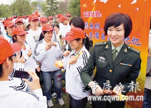 为让学子们感受当兵的光荣,市征兵办还请来三位“形象大使”现场宣传。她们是三医大的唐甜和杨菁,以及重庆警备区女战士唐勇。唐甜和杨菁是国庆阅兵式上女兵方阵的一员,她们在阅兵式上的飒爽英姿让人记忆犹新。而18岁的唐勇虽去年才入伍,但已荣立二等功。