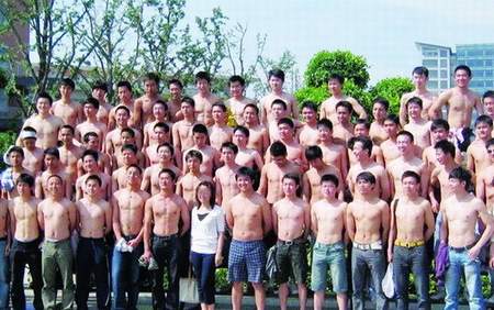记者昨日发现,在成都几个高校论坛上流传一张大学毕业生的毕业照片,照片中只有一个女生,其他则是清一色男生,而且这群帅哥们衣着简单随意,半裸上身,肌肉线条明朗,块块如磐石突兀,网友们赞叹“很壮观”、“很霸道”,称之为“最牛毕业照”。