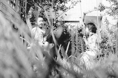 刚刚两岁、还穿着尿不湿的男孩锡坤,不知何故把垃圾桶当成了自己的研究对象,一趟趟地忙着把皮球、玩具和小朋友的鞋往里塞,试图弄清楚这个铁皮家伙的“胃口”到底有多大。