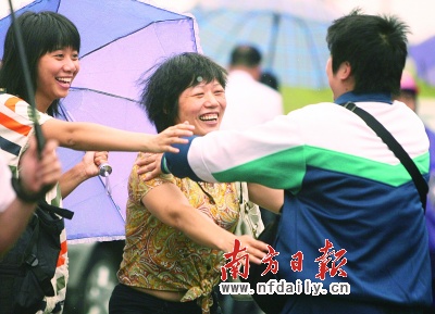 昨日下午考试结束后,三中一名男生从考场冲出来,紧紧抱住一名女老师哭起来,女老师一边安慰他,一边眼眶也湿润起来。另一名女老师安慰他说:“我告诉你,你爸爸每场考试都打电话给我,我怕影响你的心情,没敢告诉你。”