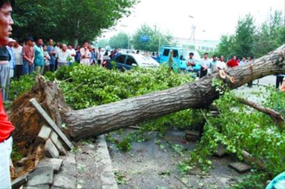因为突然刮起大风,大雨中还夹着冰雹,送女儿参加中考的阜新市民王为民特意打了一辆三轮车。可就在三轮车载着他们在街上最粗的一棵大树下避雨时,直径半米的大树突然倒下,她的女儿——17岁的中考考生王慧和三轮车司机不幸遇难。