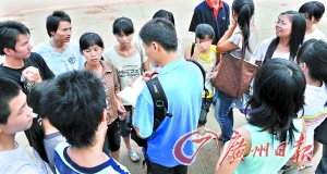 带领学生们来工作的队长丁俊永称,算上自己在内从湛江来了总共有43个学生,大部分都是高三毕业生。