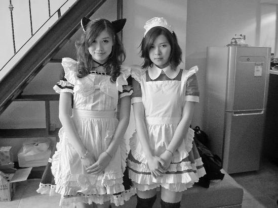 “我们的名字都很特别,像是‘桃枝’、‘莎莉亚’、‘小舞’这样的名字都是来源于日本动漫作品。上班的时候我们要穿着特制的女仆装。”“小舞”笑呵呵地对记者说,“我们大都是大学生,都很喜欢动漫,平常没课的时候就过来店里帮忙。”
