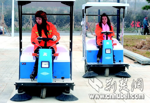 昨天中午,记者在武汉火车站东广场看到,有三名年轻、漂亮的女孩,穿着橘红色的环卫工作服,和同事们一起作业。据介绍,这三名女孩都是“85后”的大学毕业生,于2009年12月25日前后应聘上岗的,她们的名字分别是付莎莎(江汉大学卫生技术学院毕业)、罗瑛(长江职业学院毕业)、付琴菲(湖北艺术职业学院毕业)。