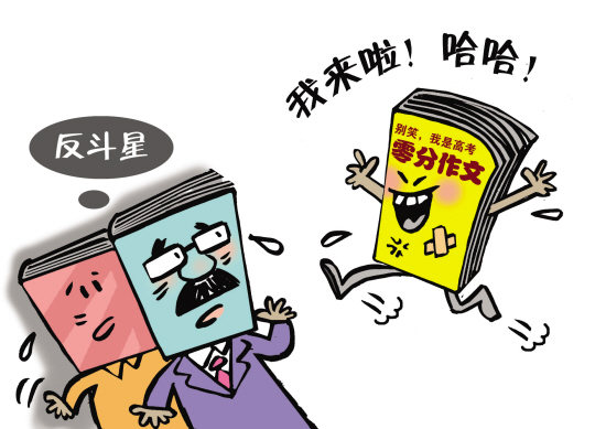 近日一本号称“史上最搞笑、最雷人的作文书”———《别笑,我是高考零分作文》在网络上受到追捧。这本书集结了近年来73篇流传甚广的高考零分作文。大部分网民称赞这些零分作文写得很有水平,针砭时弊,不应被评为零分。(11月18日《重庆晨报》)