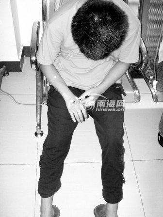 今天(5月24日)上午,记者在三亚市人民医院见到了小华,姐姐陪他到医院打针,他无精打采地坐在注射室的凳子上。他今年12岁,现在双脚非常酸疼,走路很不方便。